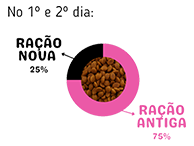 Aqui o organismo já estará um pouco mais acostumado com a ração nova.